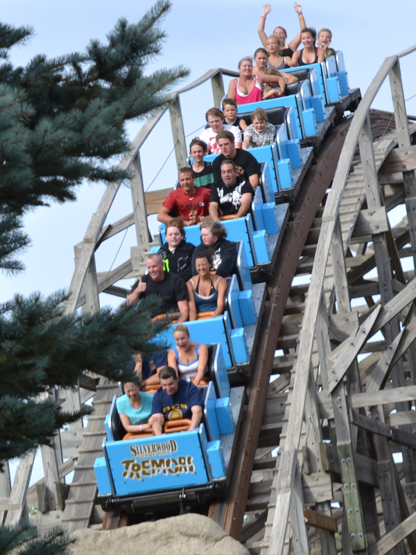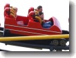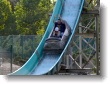 This is the same picture, but backed off to show you the run they were on. Also, you can see the greenery that surrounds Silverwood. It is set in northern Idaho in a very lovely part of the country. Lots of greenery to surround the park. Disneyland creates a illusion that there is no outside world, once you are inside the gates. You don't see the city of Anaheim surrounding you, the hotels or cars. There is just the park with the wonderful characters and buildings to make it truly a magical kingdom. But Silverwood doesn't need to do that. The area around it is rural and beautiful on its own.