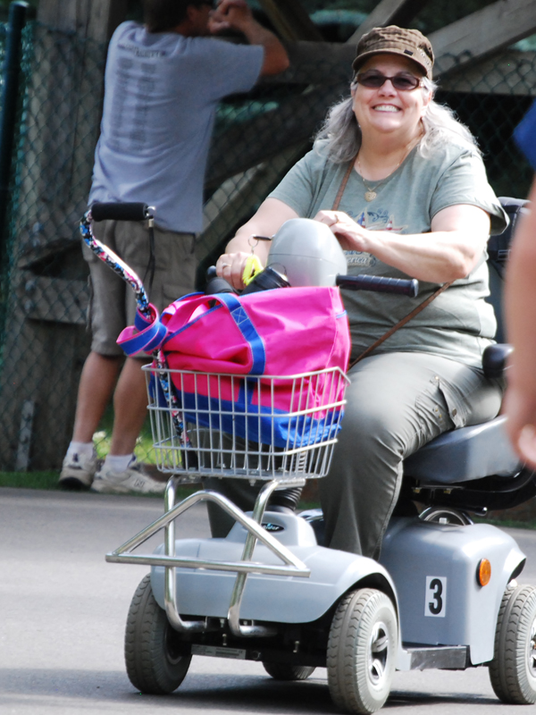 Dotti is ready to roll! The cart had a full charge on it, and the park was open to her in all directions. It was just a matter of choosing which way to go first.