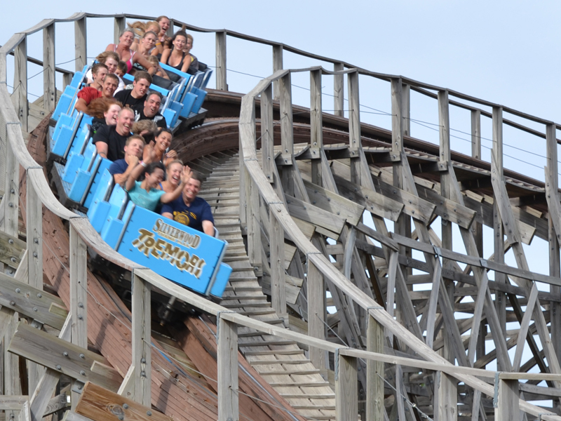 When I was growing up in the 1950's my folks always talked about "The Pike" over in Long Beach, California. It was a wooden roller-coaster that was built right on the beach, and most of the run went out over the ocean water. It was painted white, but other than that, I think it would have fit in pretty well with the two big coasters at Silverwood.