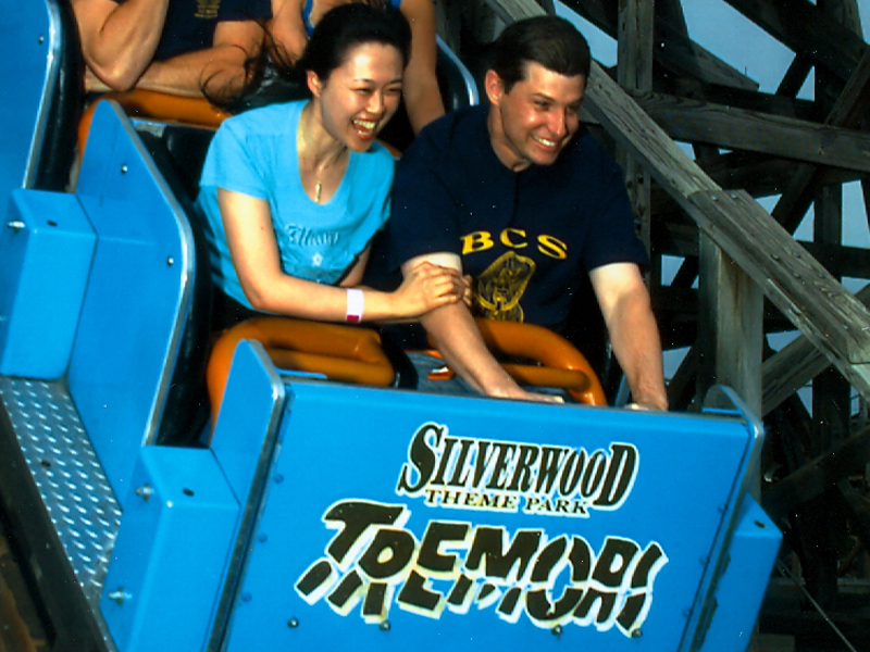 Up in the air, first row second car, Glenn and Miho were experiencing an elevated heart rate and looking forward to see what was coming next.
