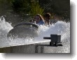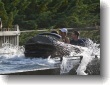 Hitting bottom—Splash!—all you can see in the sun illuminated water is the very top of Miho's cap, and the front of the boat! Kai, and Glenn are completely blocked from view.