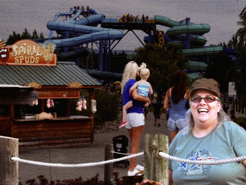 I pieced some Boulder Beach images together with a photo of Dotti in the foreground. The food, the water slides, and the people, all blend together at Silverwood to create a fun atmosphere. And of course Dotti is fun wherever she is!