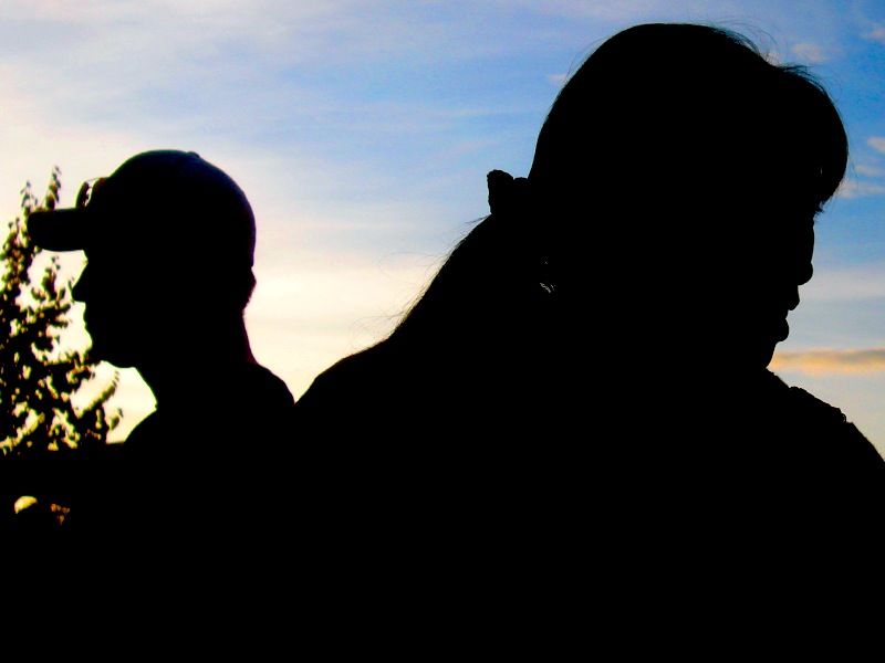 I took this silhouette photo at about 7:25 p.m., as the sun was heading down. You can see Glenn and Miho clearly, just in the shape of their silhouettes. The orange and blue in the background tells you the time of day.