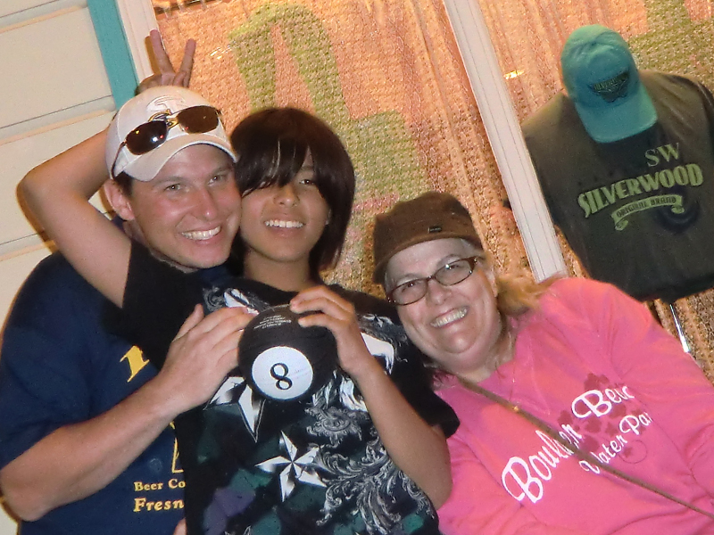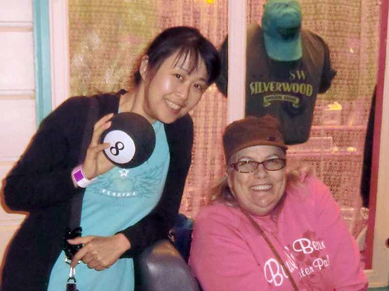 Here is the 8-ball again, and the two lovely ladies smiling for the camera, with a Silverwood tee-shirt in the window behind them.