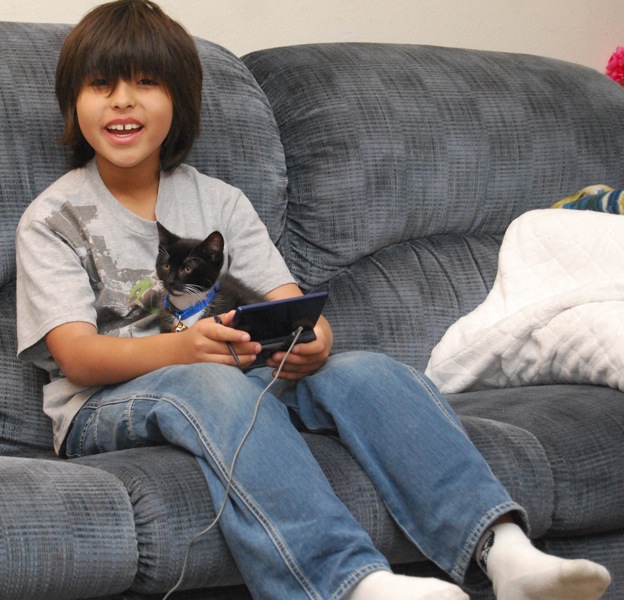 And it wasn't just that first night either. Frostbyte became a regular fixture in Kai's lap, especially when he was playing his video game.